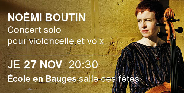 Les détails du spectacle : https://www.malrauxchambery.fr/blog/project/noemi-boutin-concert-solo-pour-violoncelle-et-voix-25-26/